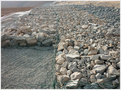防汛石籠歐洲也叫格賓網(wǎng),石籠網(wǎng)箱。石籠網(wǎng)箱在施工現(xiàn)場(chǎng)經(jīng)石頭填充,構(gòu)成具有柔性、透水性及整體性的結(jié)構(gòu), 如擋墻、河道襯砌、堰等支擋的防沖蝕工程。 石籠網(wǎng)箱由間隔1米的隔板(雙絞合六邊形金屬網(wǎng)片)分成若干單元格,為了加強(qiáng)石籠網(wǎng)箱結(jié)構(gòu)的強(qiáng)度, 所有的面網(wǎng)板邊端均采用直徑更粗的鋼絲�?刂坪鸵龑�(dǎo)河流及洪水泄洪壩、導(dǎo)流壩巖崩防護(hù)、防止水土流失、大橋保護(hù)、固土結(jié)構(gòu)、海濱防御工程、港口工程和擋土墻道路防護(hù).