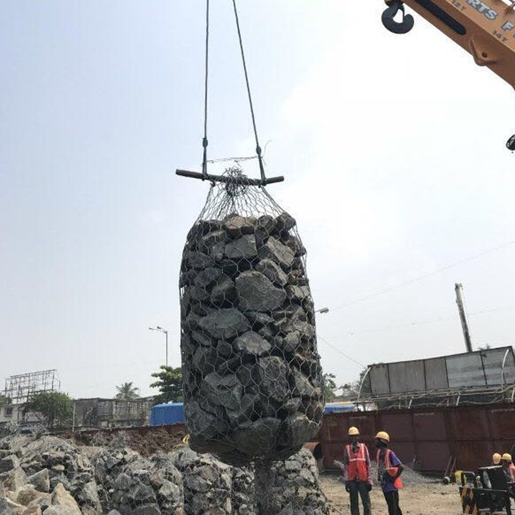 格賓護坡格賓網(wǎng)護坡具有較好的穩(wěn)定性和整體性,它是由熱軋鋼絲拉伸后形成的網(wǎng)線,經(jīng)熱鍍鋅或復合防銹處理,再經(jīng)聚**乙稀覆塑處理后織成,因此具有非常高的強度和耐腐蝕性,在自然環(huán)境中一般可正常使用幾十年而不改變性狀。
