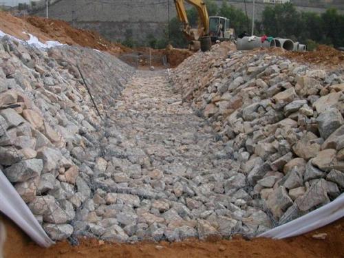 為了減輕湍急的水流沖刷河堤,在河堤的內(nèi)側(cè)或者河槽的邊緣,鋪石籠網(wǎng)箱或者石籠網(wǎng)墊,洶涌的河水直接沖擊石籠網(wǎng)箱或者石籠網(wǎng)墊,這樣保護(hù)河堤或者河槽。