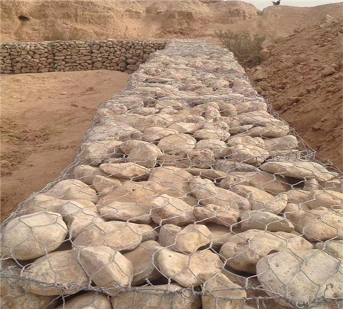 護(hù)坡格賓石籠安裝前,應(yīng)先修整護(hù)堤坡面,坡面平整誤差控制在±3厘米之內(nèi);在整理好的坡面上,將護(hù)墊四邊立起,從坡腳開始,先下層后上層,錯(cuò)縫擺設(shè)就位,避免出現(xiàn)縱向貫通縫;用綁線(鋁鋅鉛絲)將護(hù)墊相鄰邊沿綁緊,綁扎時(shí),綁線繞兩條重合的框線(邊棱)螺旋狀扭緊,螺距200毫米~250毫米為宜。